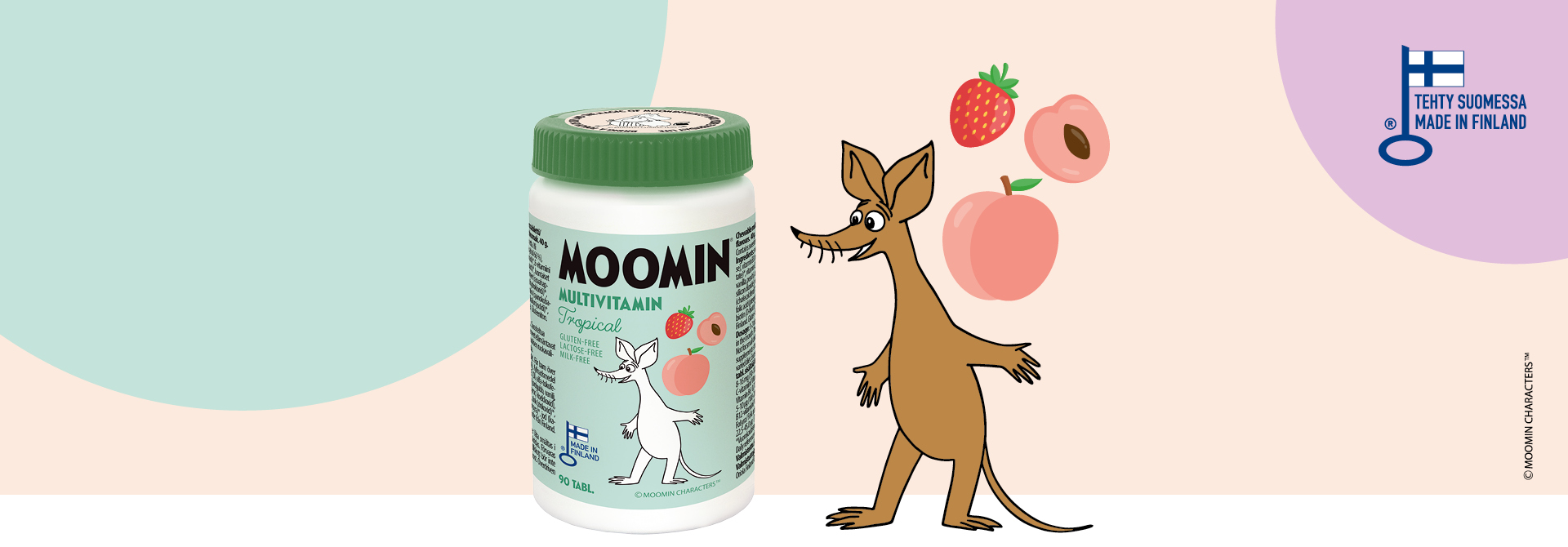 Persikan- ja mansikanmakuinen yli 3-vuotiaille lapsille ja nuorille suunniteltu monivitamiinipurutabletti. Tuote on makeutettu hammasystävällisellä ksylitolilla ja sisältää vain luontaisia aromeja ja värejä. Pienikokoisen tabletin voi pureskella tai imeskellä. Yli 3-vuotiaille lapsille ja aikuisille. Gluteeniton. Laktoositon (laktoosia 0 g).